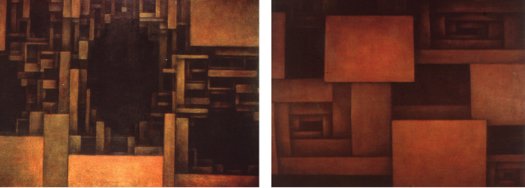 Figure 13: Eduardo Meissner, from the series Labyrinths: "Piranesiana I" (oil on canvas, 1969) 170 x 300 cm (left); "Precolombino II" (oil on canvas, 1968) 150 x 180 cm (right).28