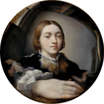 Figure 7: Parmigianino, "Self-portrait in a convex mirror"(oil paint on convex panel, c. 1523) Ø 24.4 cm.17